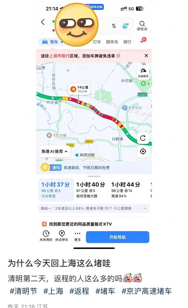 今天14时-21时迎来返程高峰!