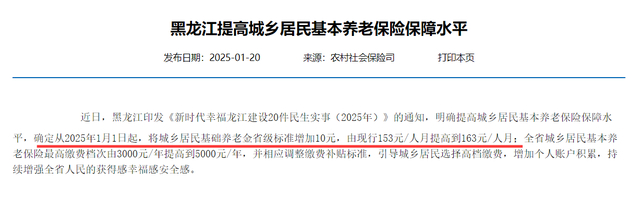 当然,还是有不少地方直接公布了调整金额。省级层面,黑龙江宣布从2025年1月1日起,将城乡居民基础养老金省级标准增加10元,由现行153元/人月提高到163元/人月。宁夏说今年城乡居民基础养老金将提高60元以上,也就是每个月提高5元。江苏说城乡居民基础养老金的省定标准将上涨8%,从每月228元提高到247元,增加19元,和去年20元差不多。