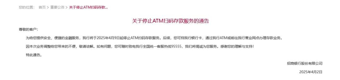 去年6月4日,民生银行发布公告称,将于2024年6月7日起停止个人手机银行“ATM无卡取现”功能,现金机具(包括现金智能柜、ATM等)也将不再支持本功能。去年6月28日,兴业银行发布公告称,自7月10日起停止手机银行中的ATM扫描取款服务。