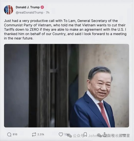 特朗普的对等关税推出后,国内股市大跌、超市抢购、示威不断、乱象丛生。国外全球声讨、盟友呛声、处境弧立,对越南带枪投靠的实际表现,特朗普要率先树立对美服软的典型,让国内看到成效,让国外看到榜样。况且 越南承诺的对美巨量的采购计划中,60%为受中国反制影响的农产品(如大豆、玉米),直接利好共和党在农业州的选情。美国农业州在2024年大选中是关键摇摆区,这一举措可为特朗普巩固政治基本盘。