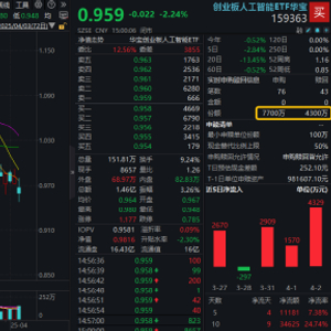 热门ETF方面,全市场首只的创业板人工智能ETF华宝(159363)震荡整理,场内价格收跌2.24%,收盘价创1月21日以来新低。全天换手率超9%,成交额达1.46亿元,交投继续活跃,盘中频现溢价交易,资金单日再度净申购3400万份。