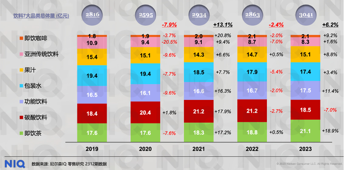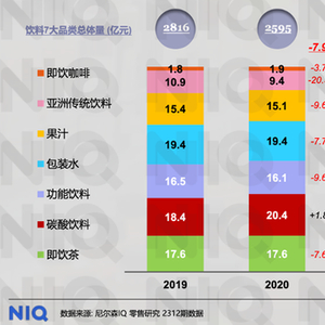 (尼尔森中国饮料趋势,2023年碳酸饮料下滑7%)
