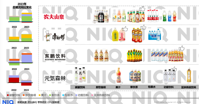 (中国饮料市场,农夫山泉、康师傅、东鹏饮料、元气森林等产品情况)