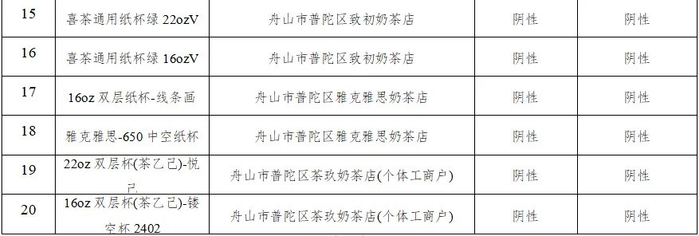20批次的奶茶杯样品均符合GB 4806.8-2022《食品安全国家标准 食品接触用纸和纸板材料及制品》标准要求,荧光物质检测结果均为未检出。