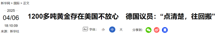 此外,德国若从美国撤出黄金储备,意味着美联储的安全性和可信度遭受质疑,可能引发连锁反应:随着地缘政治紧张加剧,会有更多国家撤回存放在美国的黄金储备。而在美国当前大打“关税战”、美德贸易关系趋紧的情况下,德国出现“撤回黄金储备”的潜在动向将加剧双方经济摩擦、升级紧张的外交关系。