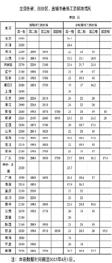 人力资源和社会保障部4月3日发布了全国各省、自治区、直辖市最低工资标准情况(截至2025年4月1日)。数据显示,目前有21个省份第一档月最低工资标准在2100元及以上,有8个省份第一档月最低工资标准超过2300元。
