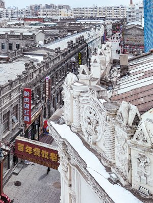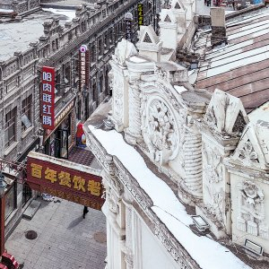 在哈尔滨,“老道外”的中华巴洛克建筑群独树一帜。上世纪初,一批批民族工商业人士在这里扎根,在以靖宇街为轴线的两侧街路购置土地大兴土木,开商铺办实业。无论是商业建筑还是民居,巴洛克建筑的奢华风格和中国传统建筑的有机结合完美地满足了他们的需求,在吸收西式建筑样式的基础上,再用蝙蝠、石榴、金蟾、牡丹等蕴含吉祥寓意的中式图案进行改造。而“前店后厂”的商业模式又形成了传统中式四合院作为居住和仓储空间的风格。这种中西合璧的建筑风格,正式被命名为“中华巴洛克”,成为世界建筑史上一道独特的文化符号。