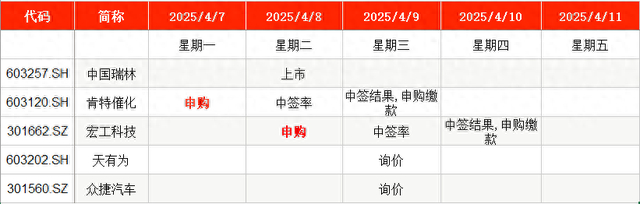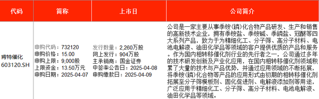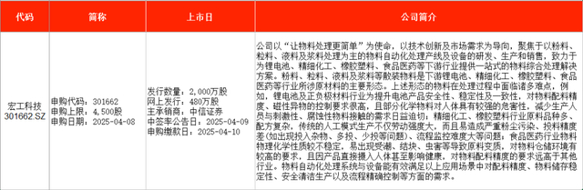 从时间表看,肯特催化在周一(4月7日)申购,宏工科技则在周二(4月8日)申购。