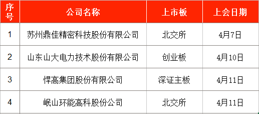 北交所方面,北京证券交易所上市委员会定于2025年4月7日上午9时召开2025年第2次审议会议。审议苏州鼎佳精密科技股份有限公司(下称“鼎佳精密”)的首发事项。