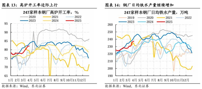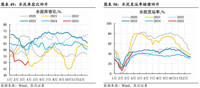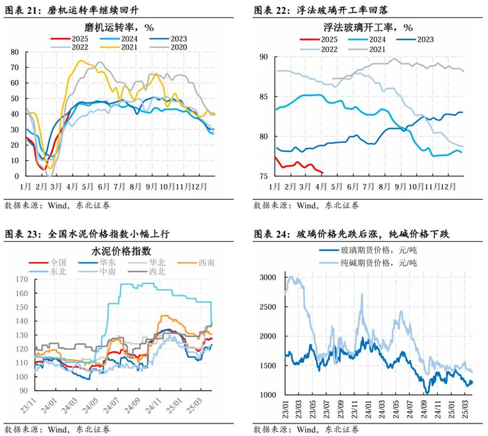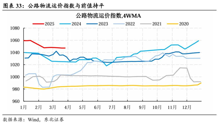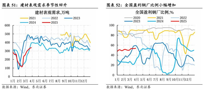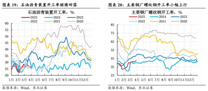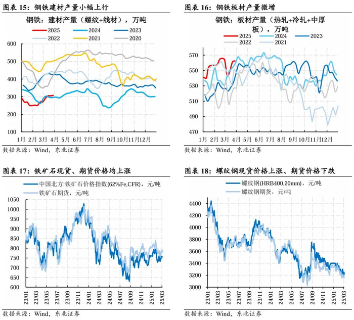 3月建筑业PMI指数连续第二个月上行,且目前绝对水平已达53.4%,房屋建筑和土木工程建筑活动均保持扩张,反映基建投资持续发力。不过结合高频数据来看,土地成交行情反复及建材价格表现低迷,后续建筑业回升斜率能否继续保持上行仍需进一步观察。