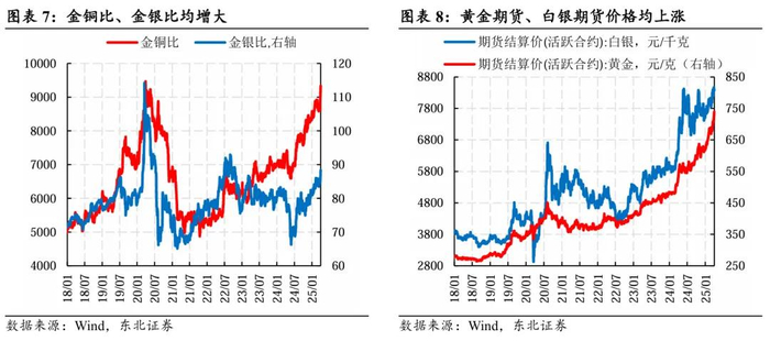 1)在特朗普“对等关税”政策影响和中国反制等因素影响下,本周全球风险资产大幅下挫,黄金价格亦出现一定下跌。4月2日特朗普“对等关税”政策大幅超出市场预期,对中国商品额外加征34%关税,欧盟、日韩、东南亚等国家也均未能幸免。随后中国对美国商品实施对等反制措施。超预期关税影响下全球风险资产价格大幅受挫,外汇市场亦出现普遍下跌。美元兑人民币即期汇率阶段性跌破7.3大关,欧元、英镑等全球主要货币下跌幅度更大。