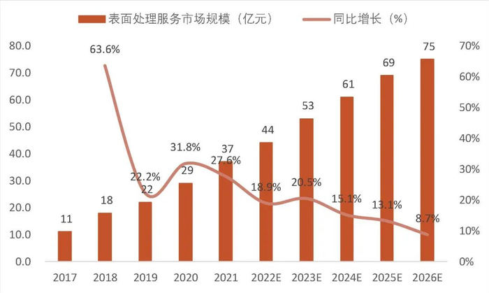 中国泛半导体设备零部件表面处理服务市场规模预计达75亿元