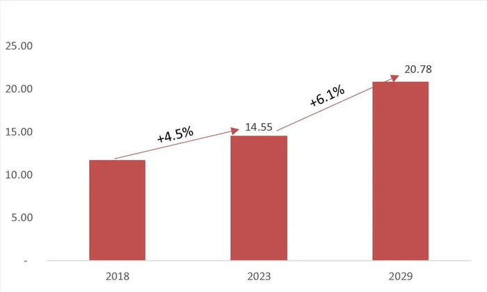 图18:全球半导体陶瓷加热器市场规模(亿美元,%)