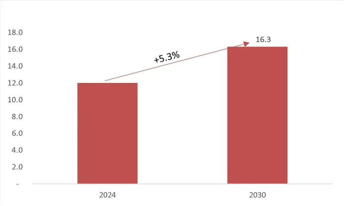 预计2030年全球半导体用陶瓷静电卡盘市场规模达16.3亿美元。根据QYResearch报告显示,预计2030年全球陶瓷静电卡盘市场规模将达到24.24亿美元,2023-2030年复合增长率为4.99%。半导体行业是陶瓷静电卡盘的主要消费者,主要用于集成电路 (IC) 和其他电子元件的制造。由于技术的进步和应用场景的增加,对半导体器件的需求持续增长,对陶瓷静电卡盘的需求也随之增加。据QYResearch报告“全球半导体用陶瓷静电卡盘市场报告2024-2030”显示,预计2030年全球半导体用陶瓷静电卡盘市场规模将达到16.3亿美元,2024-2030年复合增长率为5.3%。