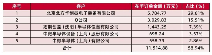 表7:公司在手订单前五大客户金额及占比(万元,%)