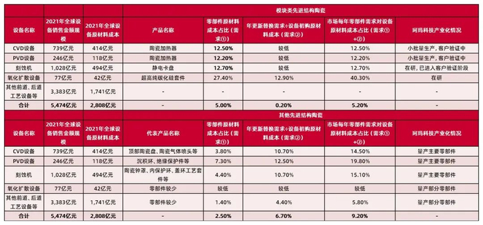 表2:半导体领域模块类先进结构陶瓷占设备的成本比例
