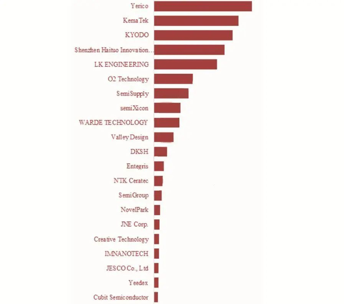 半导体用陶瓷静电卡盘全球市场集中度较高。根据QYResearch报告“全球半导体用陶瓷静电卡盘市场研究报告2024-2030”,就应用设备而言,目前蚀刻设备是最主要的需求来源,占据大约44.5%的份额。全球范围内半导体用陶瓷静电卡盘生产商主要包括日本新光电气(SHINKO)、日本碍子、NTKCERATEC(日本特殊陶业)、日本TOTO、美国Entegris等。2023年,全球前十强厂商占有大约92.0%的市场份额。