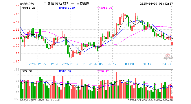 4月7日,半导体设备ETF(561980)开盘跌3.69%,报1.252元。半导体设备ETF(561980)重仓股方面,北方华创开盘跌1.13%,中微公司跌4.34%,中芯国际跌4.08%,海光信息跌4.56%,韦尔股份跌8.21%,华海清科跌3.39%,南大光电跌3.48%,拓荆科技跌2.25%,长川科技跌4.41%,中科飞测跌4.20%。