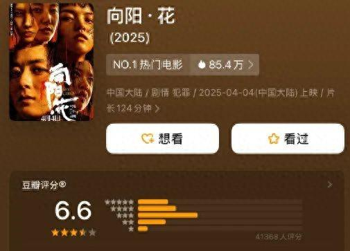 4月6日,由赵丽颖主演、冯小刚导演的电影《向阳·花》豆瓣开分6.6,其中三星以下占6成。