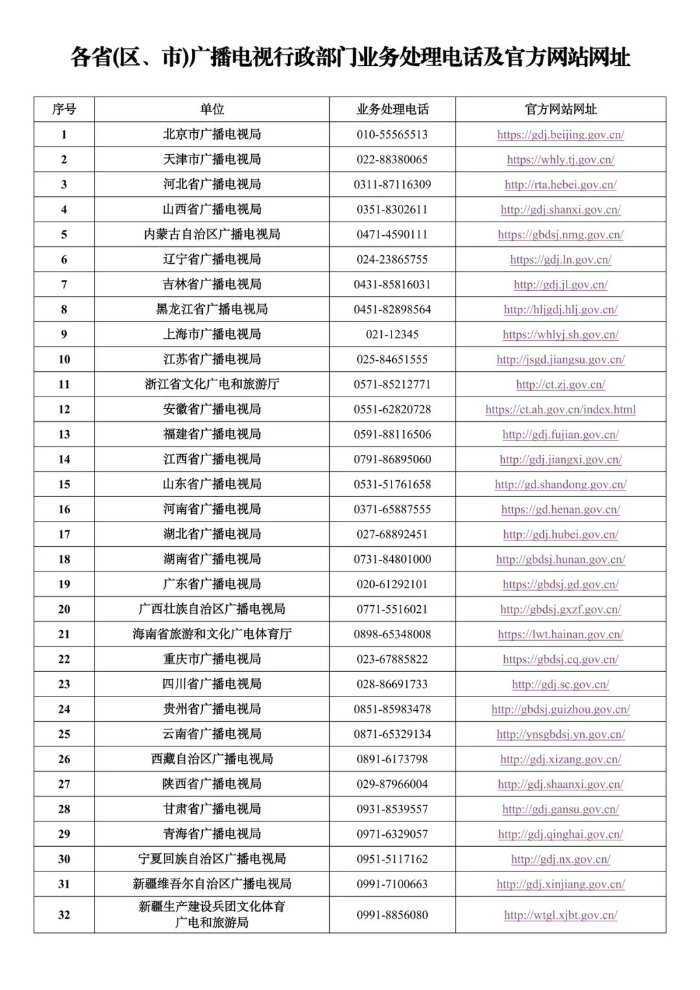 1.所在省(区、市)广播电视行政部门业务处理电话,以及官方网站等线上渠道;