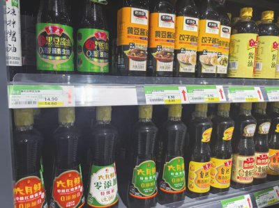 如海天的一款金标生抽,其在瓶身解释:“以下成分无添加:防腐剂(苯甲酸钠、山梨酸钾)、甜味剂(三氯蔗糖、安赛蜜)含量未检出。添加味精含量:0。”不含甜味剂,但该产品含有白砂糖。而李锦记的一款锦珍生抽,瓶身同样标注“0添加”,其解释称:“0%添加防腐剂:指0%添加山梨酸钾、苯甲酸钠,含量未检出。”但配料表中,却含有三氯蔗糖。
