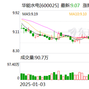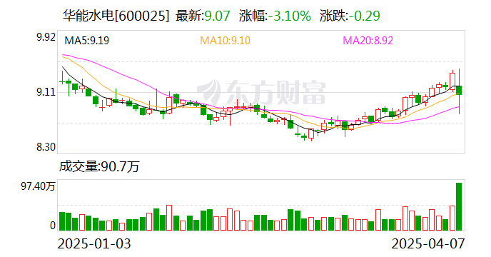 华能水电2025年一季度发电量212.92亿千瓦时 同比增31.22%
