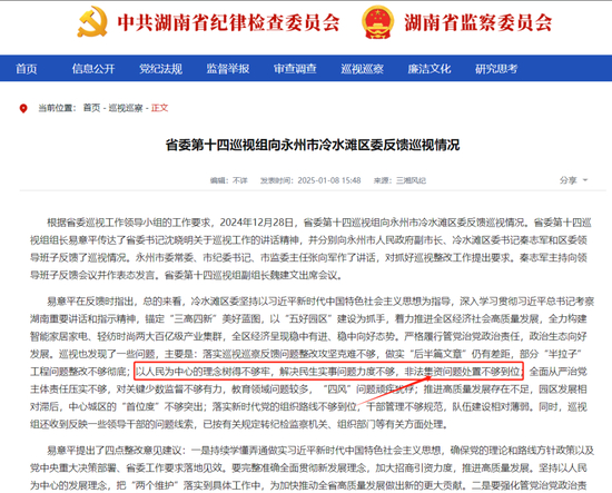 对此,永州市人民政府副市长、冷水滩区委书记秦志军公开向巡视组表态,“省委巡视反馈的问题实事求是、客观中肯。这些问题深刻揭示了冷水滩区在各项工作中的差距和不足,并提出了明确的整改要求。区委对此诚恳接受、照单全收,将严格按照省委工作要求和巡视反馈意见,扎扎实实抓好问题整改,确保高质量完成巡视‘后半篇文章’。”