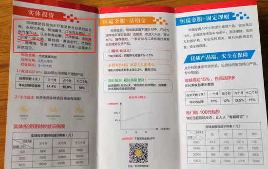 富有戏剧性的是,仅仅3天前的10月30日,恒瑞公司还发动业务员大肆推广有史以来月息超过2分的金融资产包,很多老顾客仅剩的养老钱也被恒瑞圈走了最后一波投资。“我感到非常突然,还没反应过来,我投资的钱说没了就没了。”68岁的吴姓老人说,他是五保户,存了25万元养老钱,没想到买棺材板的钱全投了资产包,“现在我有病不敢医,养老无着落。”