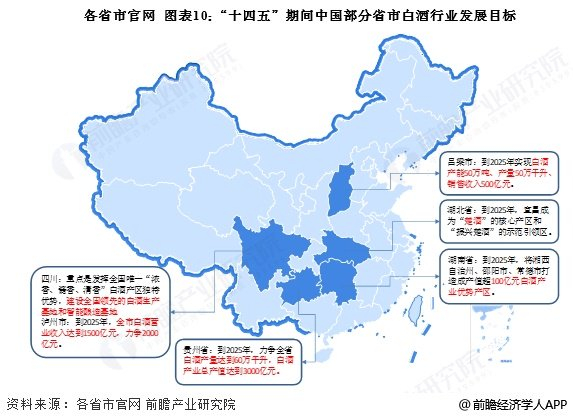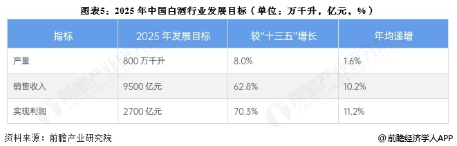 “十四五”期间,四川省、贵州省、湖北省、湖南省、泸州市、吕梁市等提出了白酒产业发展目标,到2025年,白酒行业产量、销售收入等将会得到较大幅度的提升。