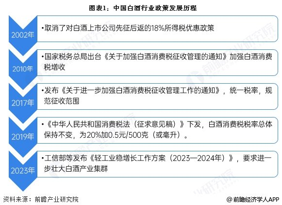 我国政策对于白酒行业的调控主要体现在对白酒消费税的增收方面,2000年来,我国对于白酒消费税的日益收紧。