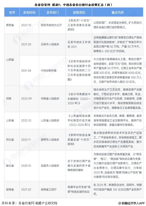 ——31省市白酒行业政策汇总