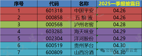 到目前为止,我的自选股中只有贵州茅台、中国平安、海天味业发布了2024年报,五粮液、山西汾酒、泸州老窖、洋河股份都还未发布2024年报,从披露日看它们会同时发布2024年报和2025一季报,自选股2025一季报披露日详见下图: