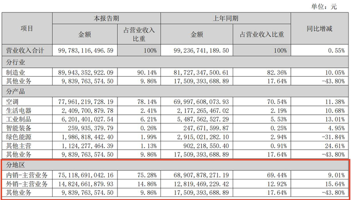 记者查询格力电器2024年中期财报注意到,报告期内,格力电器外销业务总营收148.25亿元,同比增长15.64%,占总营收比重为14.86%。