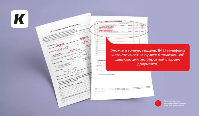 精确型号、手机IMEI及价格需填写在海关申报单第6项(文件背面)。
