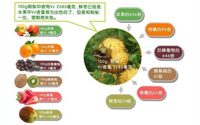 研究显示,刺梨具有保障人体发育、生命活动、健康维护的各大类营养物质和活性物质的营养成分特点,富含的多种植物化学素和膳食纤维对国民预防和辅助治疗慢性疾病具有重要作用,其中维C含量每100克中高达1000至3500毫克,被誉为“维C之王”。