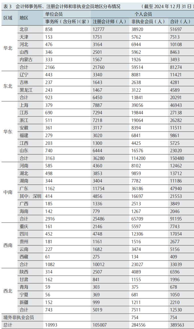 中注协:全国会计师事务所、注册会计师及非执业会员2024 年度数据分析
