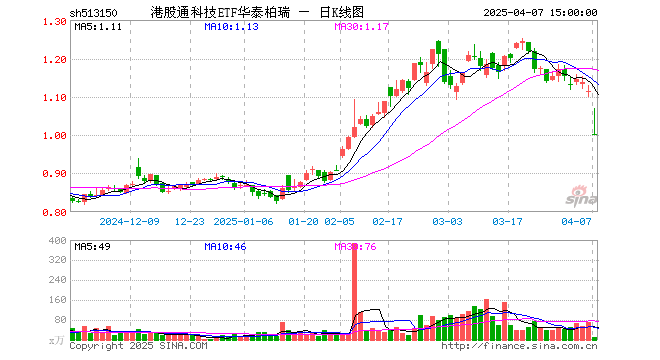 4月7日,港股通科技ETF华泰柏瑞(513150)跌9.96%,成交额935.67万元。当日份额增加100.00万份,最新份额为1.44亿份,近20个交易日份额增加100.00万份。最新资产净值计算值为1.31亿元。