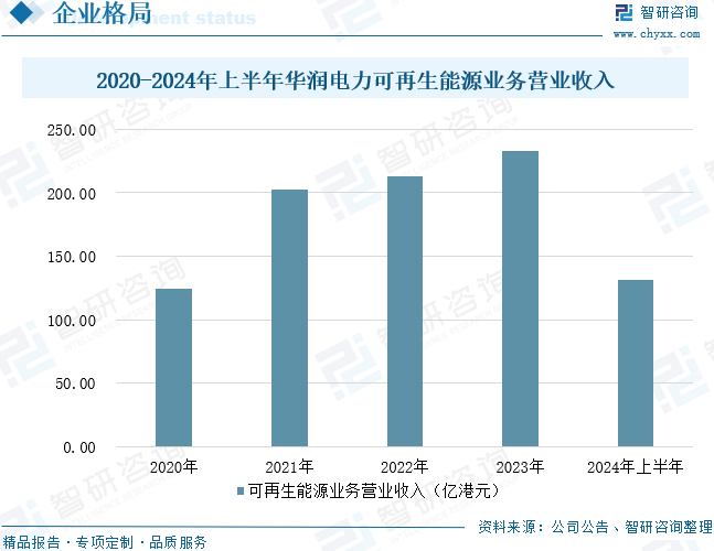 华润电力控股有限公司(简称“华润电力”)成立于2001年8月,2003年11月在香港联合交易所主板上市,目前位列香港恒生指数成份股。华润电力是华润集团旗下香港上市公司,是中国效率最高、效益最好的综合能源公司之一,业务涉及风电、光伏发电、火电、水电、分布式能源、售电、综合能源服务、煤炭等领域。面对经济社会与能源行业绿色低碳转型升级的重大机遇,华润电力将强化战略引领,坚持绿色发展,加强公司治理,加大创新力度,全力构建适应新形势的发展能力,以追求卓越、精益求精的态度,转型发展、提质增效,推动公司业绩稳健增长。数据显示,2024年上半年,华润电力可再生能源业务营业收入同比增长5.82%至131.53亿港元。