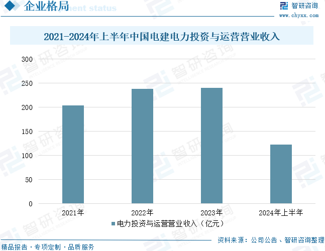 中国电力建设股份有限公司以“建设清洁能源,营造绿色环境,服务智慧城市”为企业使命,致力建设成为具有全球竞争力的世界一流企业。公司业务涵盖工程承包与勘测设计、电力投资与运营及其他业务,具有规划、勘测、设计、施工、运营、装备制造和投融资等全产业链服务能力,能够为业主提供一站式综合性服务。公司坚持全球化经营、质量效益型运营,以可持续发展目标为导向,持续优化公司治理,不断强化安全与风险防控,致力提供高品质产品与服务,保障客户权益;不断夯实发展基础,全力做强做优做大主营业务,努力为股东创造更大价值。数据显示,2024年上半年,中国电建电力投资与运营营业收入为121.8亿元。