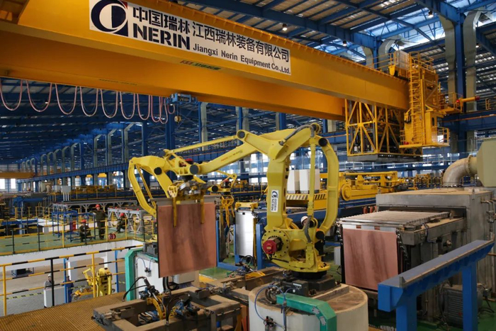 江西瑞林装备有限公司总经理刘文彬自豪地说:“公司研发的机器人取板圆盘浇铸机、机器人型剥片机组、电解(电积)专用吊车吊具等数十套智能装备已远销海外,在国际市场上备受青睐。这些智能装备的应用,大幅提高了生产效率和产品质量,降低了人力成本,进一步增强了公司的核心竞争力。”公司自主研发的NGL炉成套工艺及设备,引领行业向绿色低碳转型,助力我国再生铜冶炼行业高质量发展,并成为我国废杂铜冶炼领域唯一入选工业和信息化部《国家涉重金属重点行业清洁生产先进适用技术推荐目录》的技术。