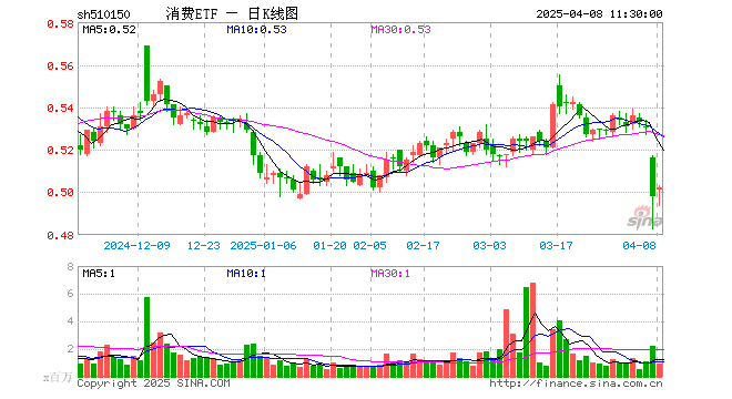 消费ETF(510150)涨0.80%,半日成交额4466.70万元