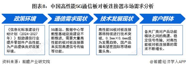 国内市场对高性能板对板连接器的需求日益增长。随着智能手机、平板电脑、物联网设备、无人机、安防通信设备以及车载通信设备的普及,电子产品集成度不断提升,这对通信板对板连接器的性能提出了更高要求。政策现状:政策的支持为通信板对板连接器等电子器件的发展创造了良好的政策环境。板对板连接器作为现代电子设备中不可或缺的核心组件,正随着设备小型化和高密度设计的需求而不断进步。通信需求:目前,5G基础设施配套建设增速有所放缓,但随着5G应用的不断拓展,如5G手机、基站、数据中心等领域对高性能板对板连接器的需求依然稳定存在。技术发展:目前板对板连接器是通信领域更为灵活的解决方案,目前行业内掌握核心技术的企业较少。客户群体:市场上对高性能5G通信板对板连接器有需求的企业类型主要是通信设备制造商、智能手机厂商、物联网设备厂商、汽车电子企业以及安防和无人机厂商。