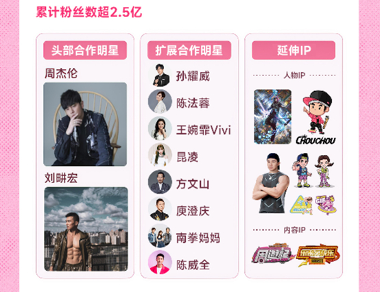 作为致力于打造常青IP的巨星传奇,其IP业务近三年复合增长约为73.76%,增速超行业平均水平。公司为周杰伦及刘畊宏分别打造了“周同学”“刘教练”两大超级IP,并构建了包括孙耀威、陈法蓉、王婉霏、昆凌、方文山、庾澄庆、南拳妈妈、陈威全等在内的明星IP矩阵,全网粉丝累计超2.5亿,后续持续变现潜力不可小觑。