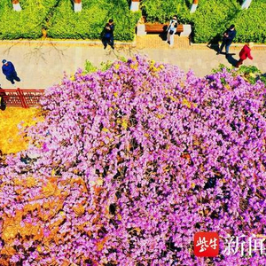 紫藤花是一种攀缘性灌木或小乔木,其花朵形态特殊,长长地垂挂在枝条上,如同一串串悬挂的紫色颜料。紫藤花朵呈锥形簇生于枝顶,在春天开放,芳香四溢,不少游客来到这里拍照打卡,感受迷人春色。