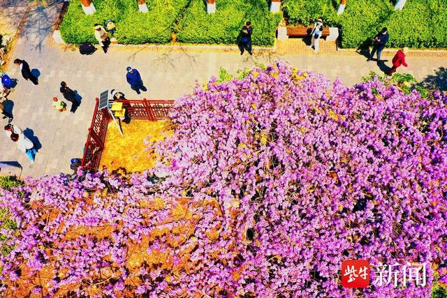 南京郑和公园里,600多岁“老寿星”紫藤开出繁花似瀑布