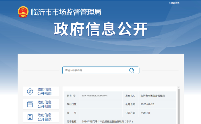 山东省临沂市市场监管局发布2024年烟花爆竹产品质量监督抽查结果(专项)