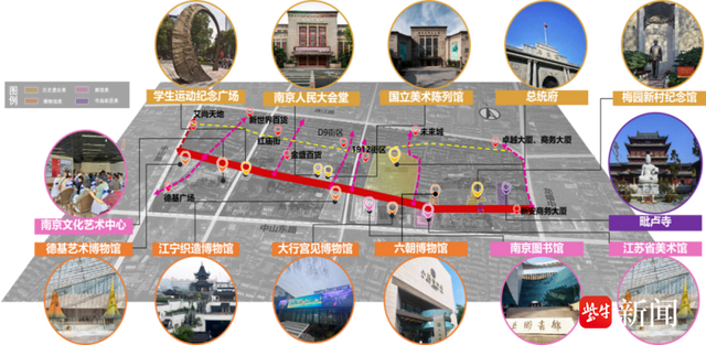 玄武区将对长江路沿线住宅、商业进行统筹规划与整体设计,串联起梅园新村、省美术馆等13个文博场馆。充分挖掘长江路片区历史文化底蕴,不断放大“一条长江路、半部金陵史”内涵,打造成“中国最大的博物馆街”。