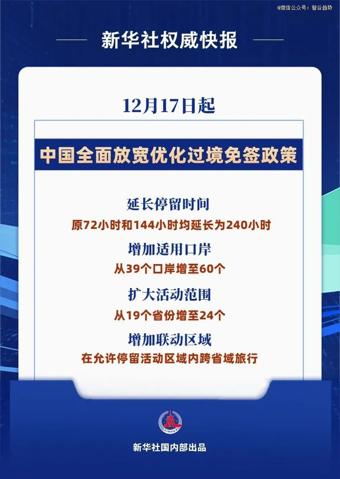 过境免签的停留时间更长了——由原来的72小时和144小时,延长至240小时(10天);