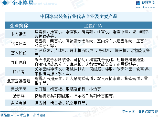 冰雪装备行业企业格局和重点企业分析