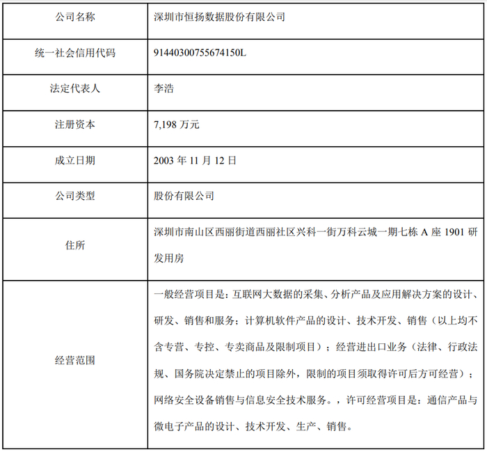 本次交易的标的公司为深圳市恒扬数据股份有限公司,如下所示: